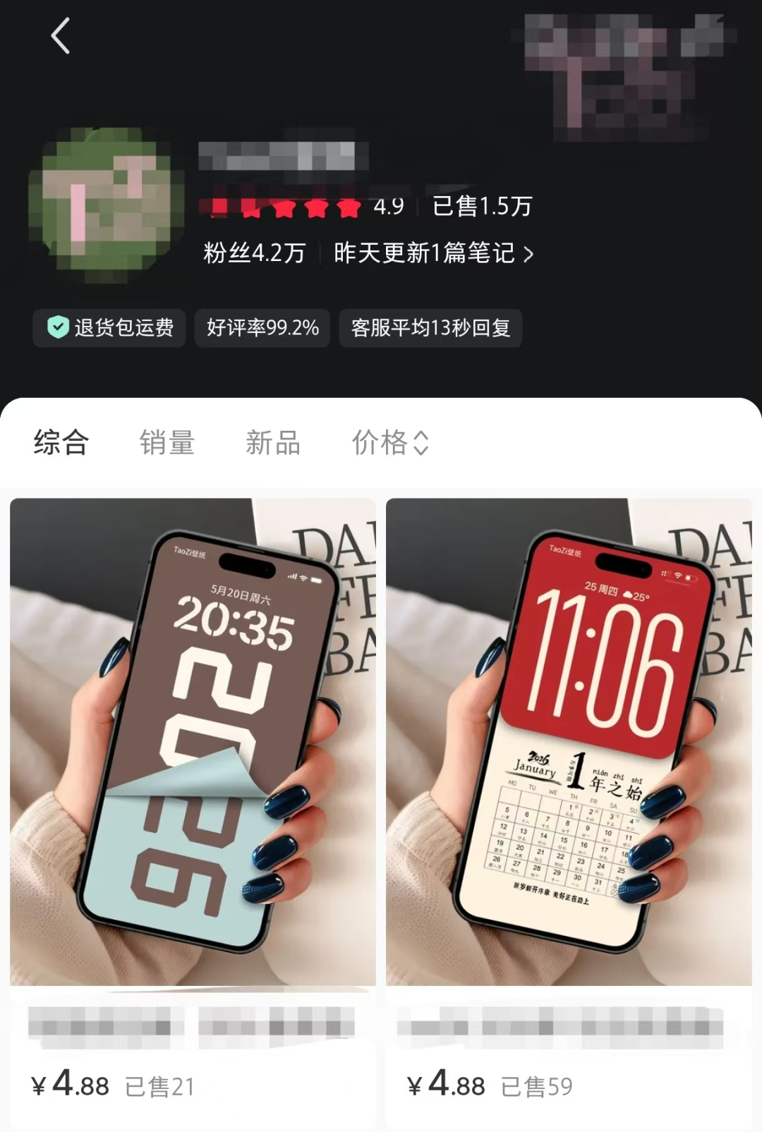 点进去,评论区炸了。全是求图的。再点头像,一个卖壁纸的店铺。4.88元一套,卖了1.5万单。